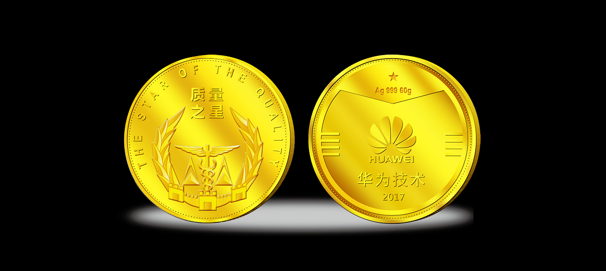 • 華為技術定制金幣華為技術定制金幣 材質:Au999 / 工藝:鏡面凸砂
